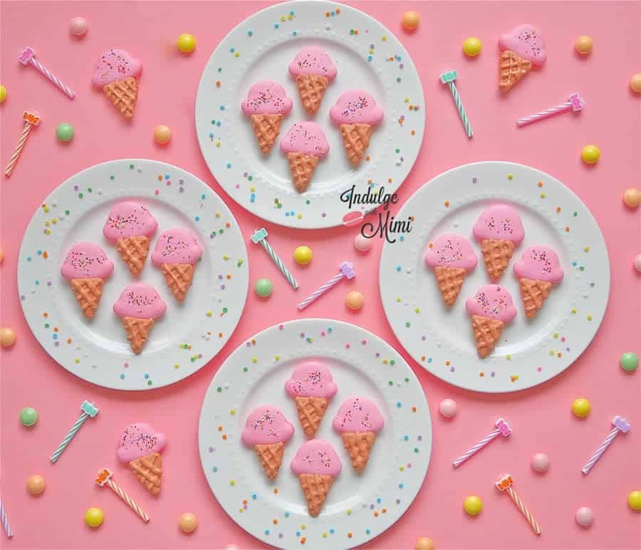 Take the now perfectly round ice cream slice and sandwich it between two big macaron shells. Immediately place it in an airtight container and transfer it to the freezer. Place each sandwich with the flat side down since the ice cream sinks easily. Keep parchment paper in between each big macaron sandwich since the shells can stick to each other when placed in the freezer. Big macaron ice cream sandwiches can be kept for up to one month in the freezer. Enjoy!