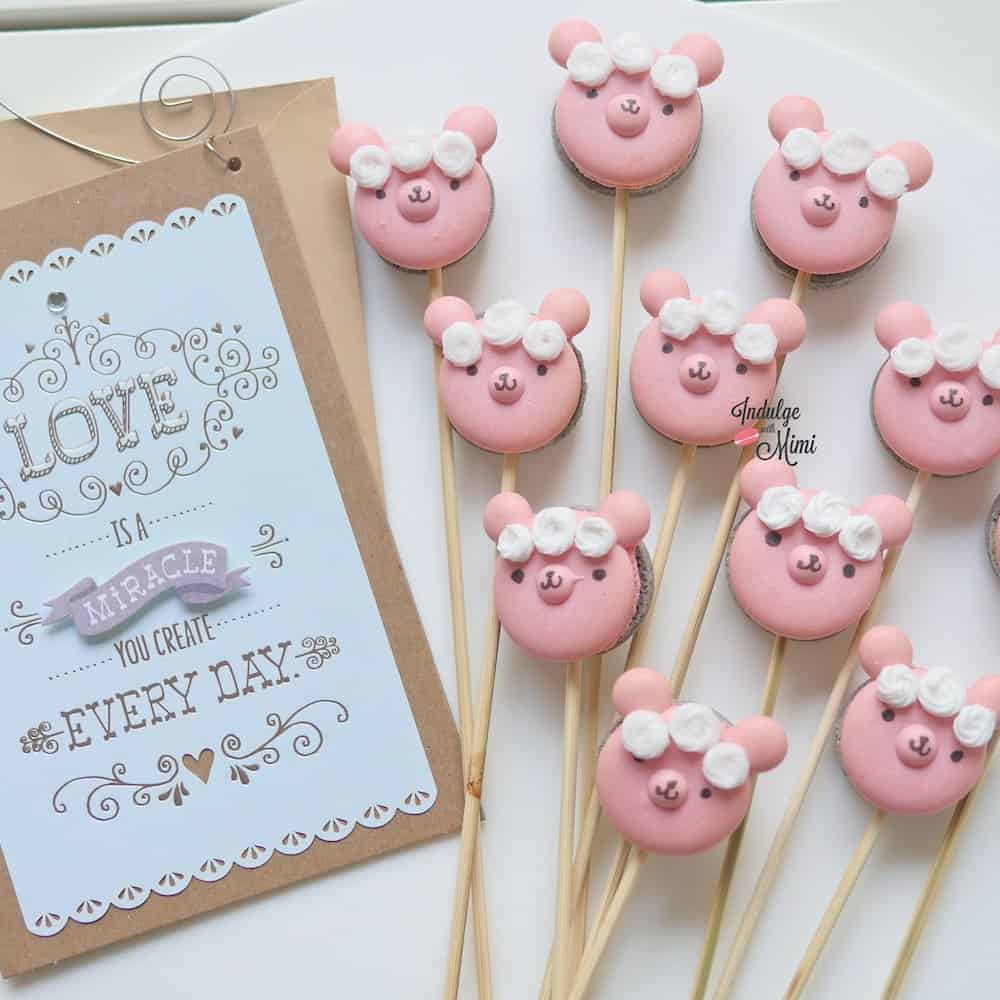Pink Bear Bridal Macarons Favors with Royal Sugar Roses (Bear Template)