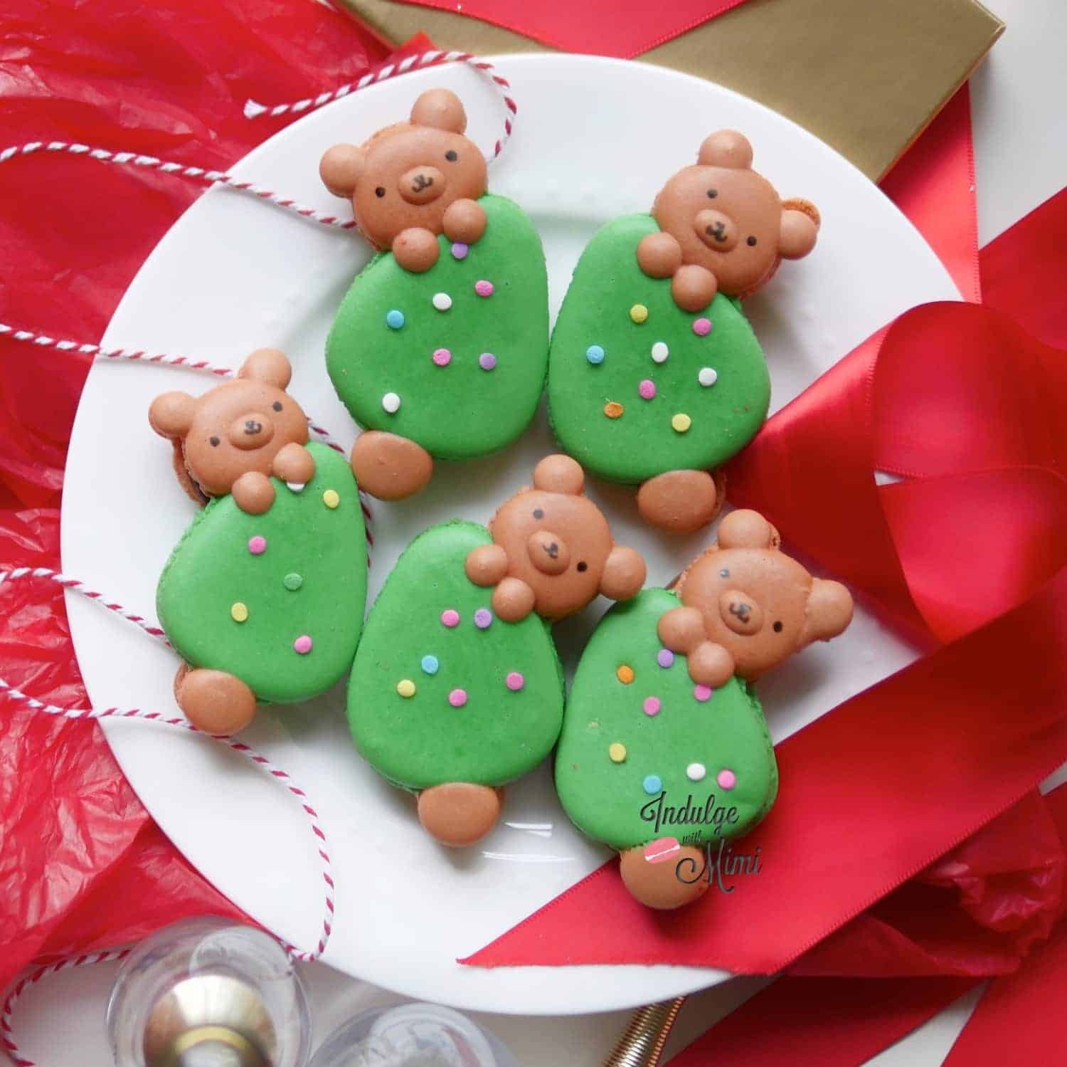 Chocolate Peppermint Macarons with Christmas Bear Template