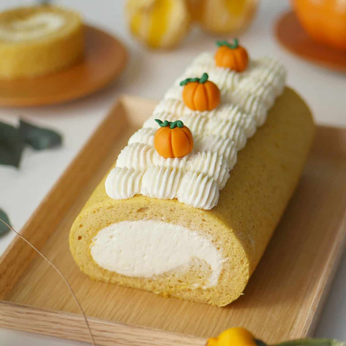 Asian-style Pumpkin Spice Cake Roll with Cream Cheese Filling