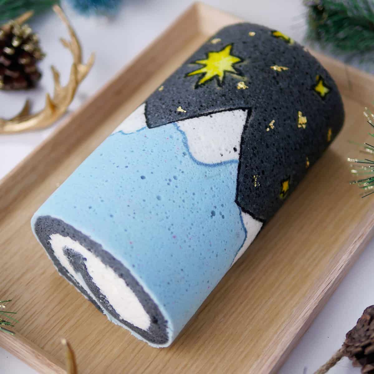 Echanted Forest Christmas Yule Log Cake Made with Japanese Cake Roll