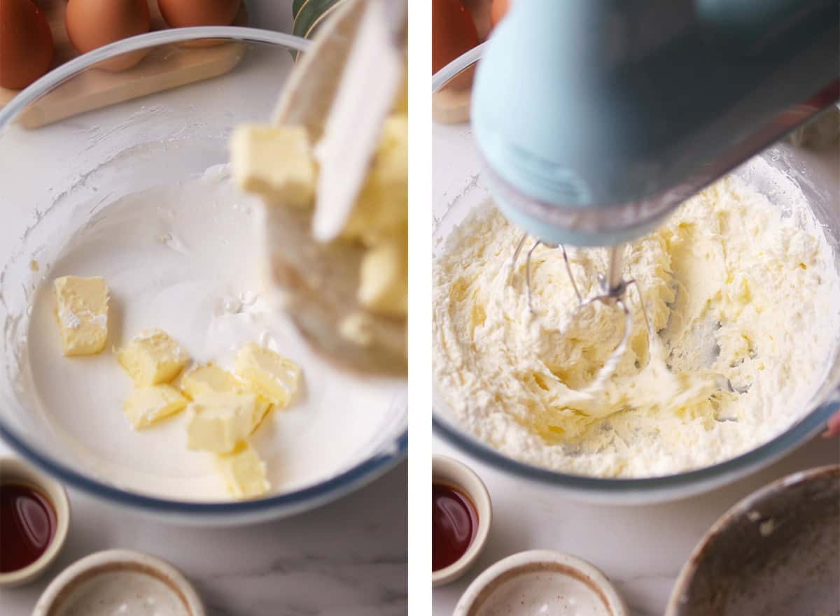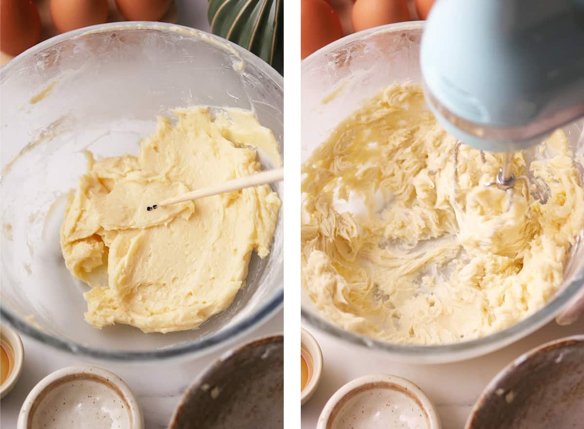 The mixture might look curdled or separated for a while but keep mixing. It will all come together (see process photos in post body). Add any extract, flavorings, salt or food coloring if desired. Beat until incorporated.